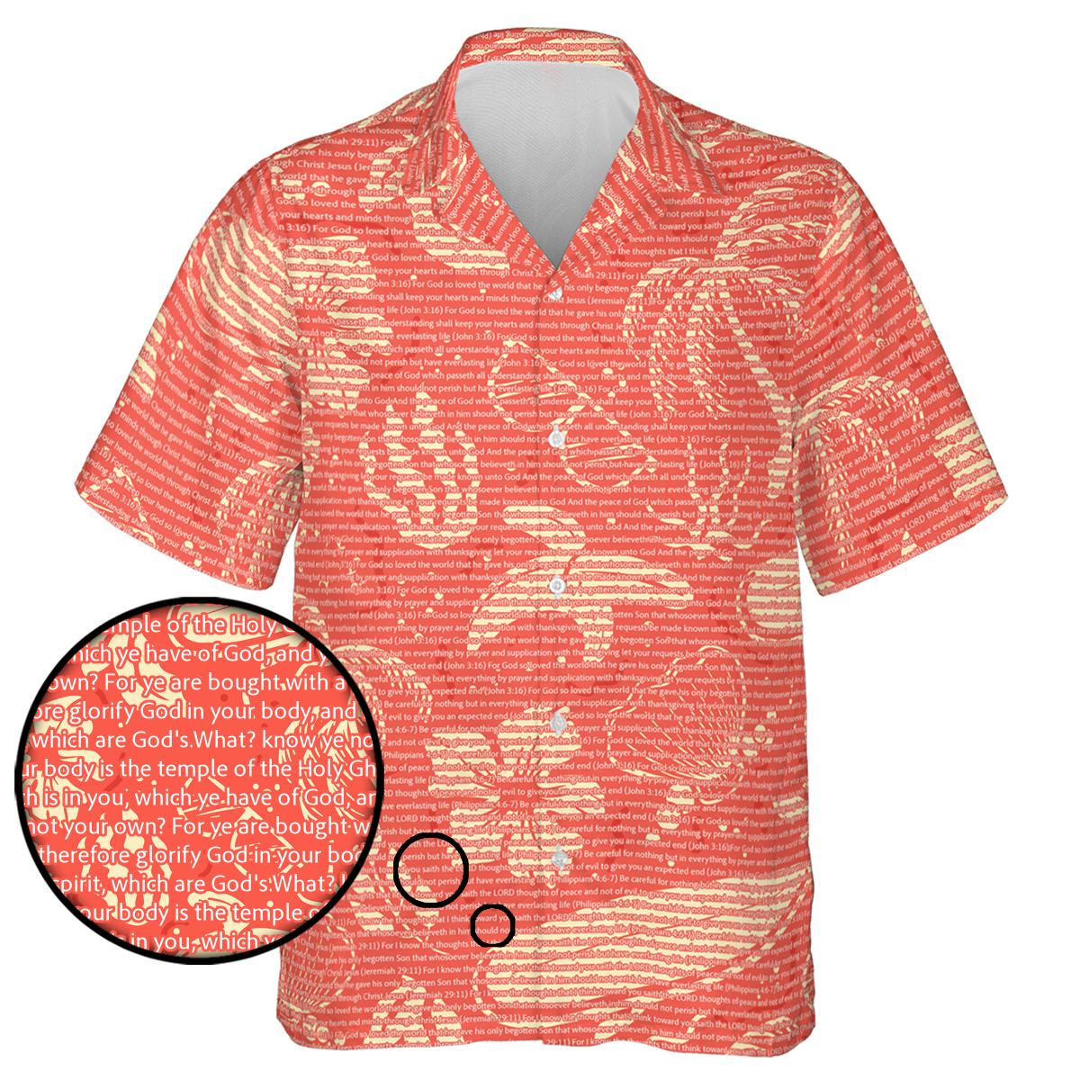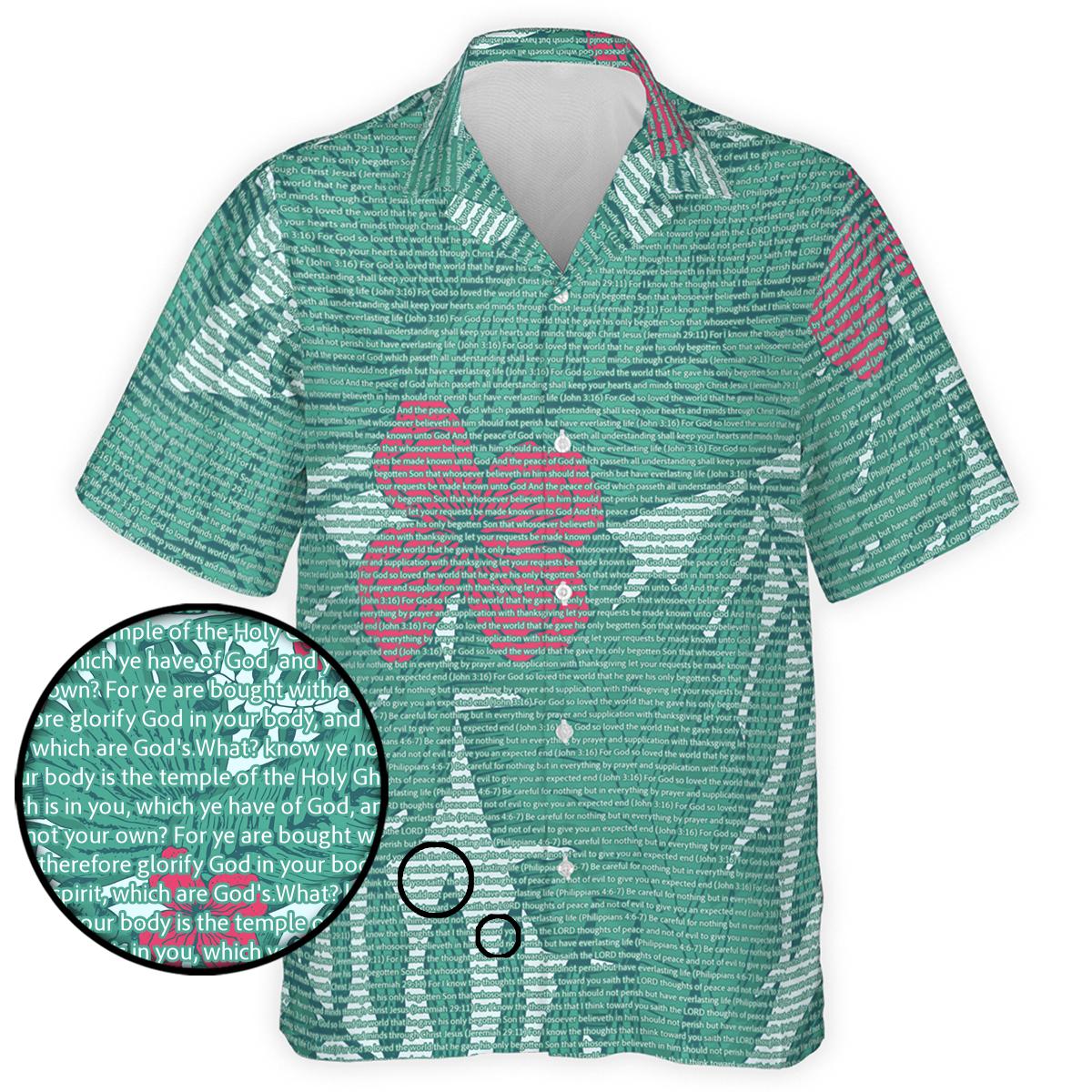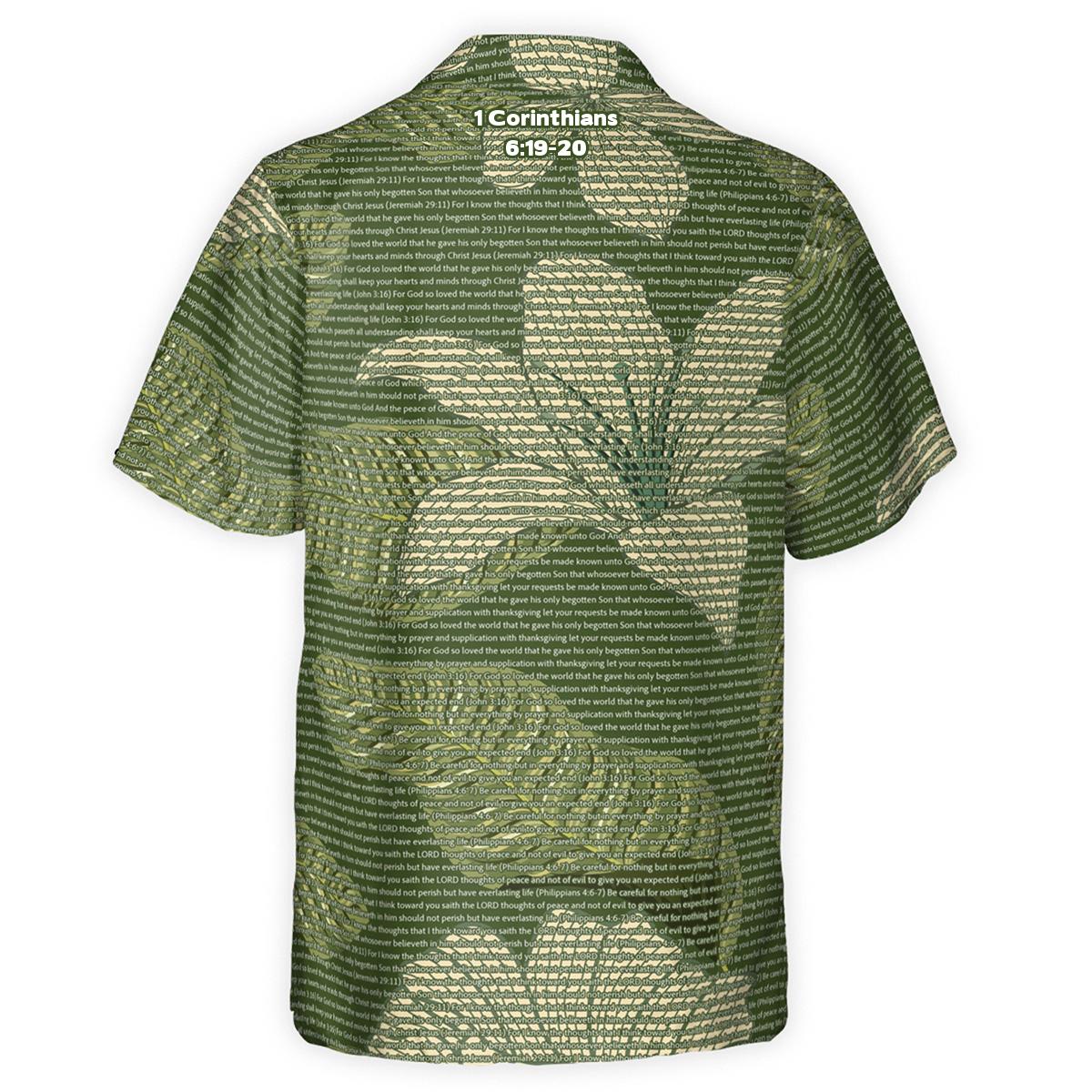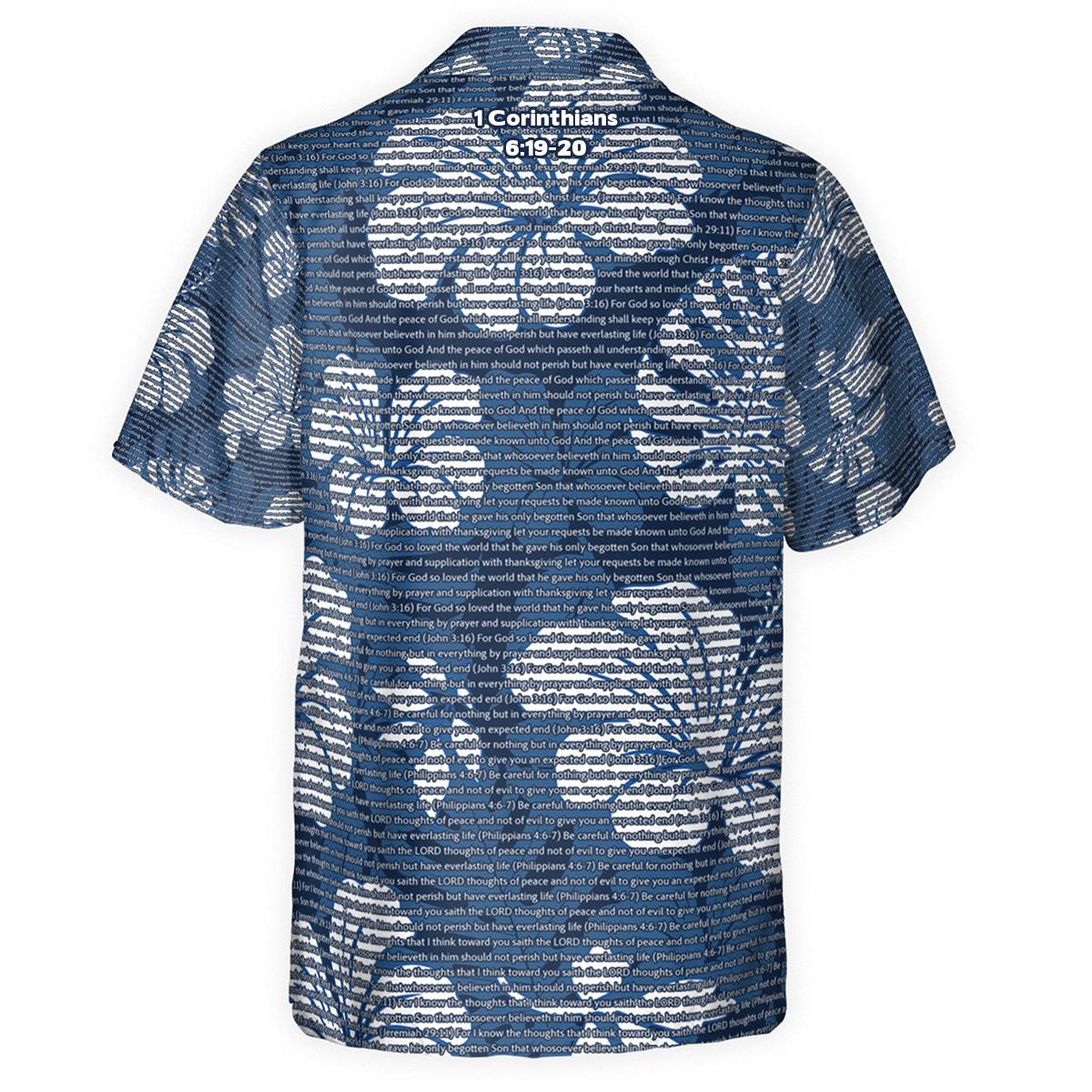 Wear your faith in island style with our cotton Hawaiian shirt featuring 1 Corinthians 6:19-20. This soft, breathable shirt brings one of scripture's most powerful promises to life - that nothing can separate us from God's love. Perfect for church, beach, or everyday wear. Faith meets aloha in every comfortable thread.