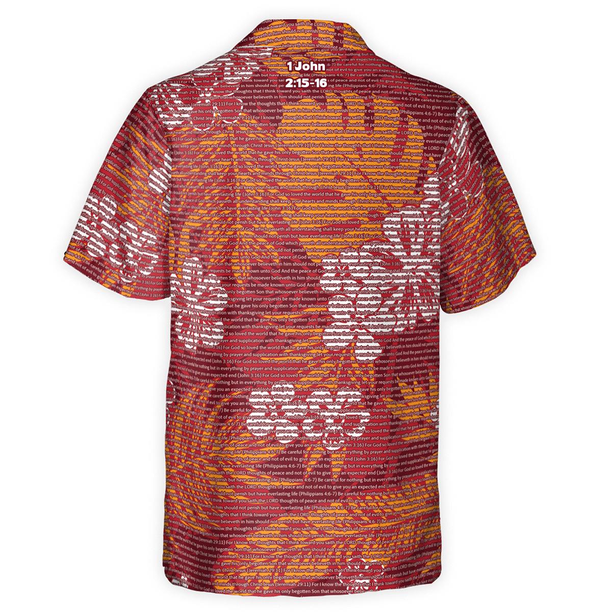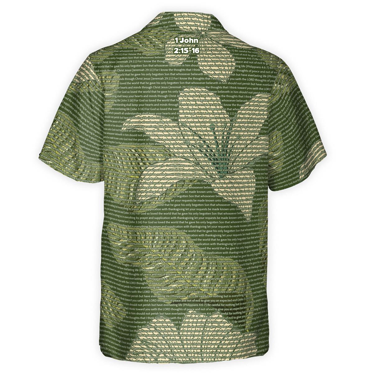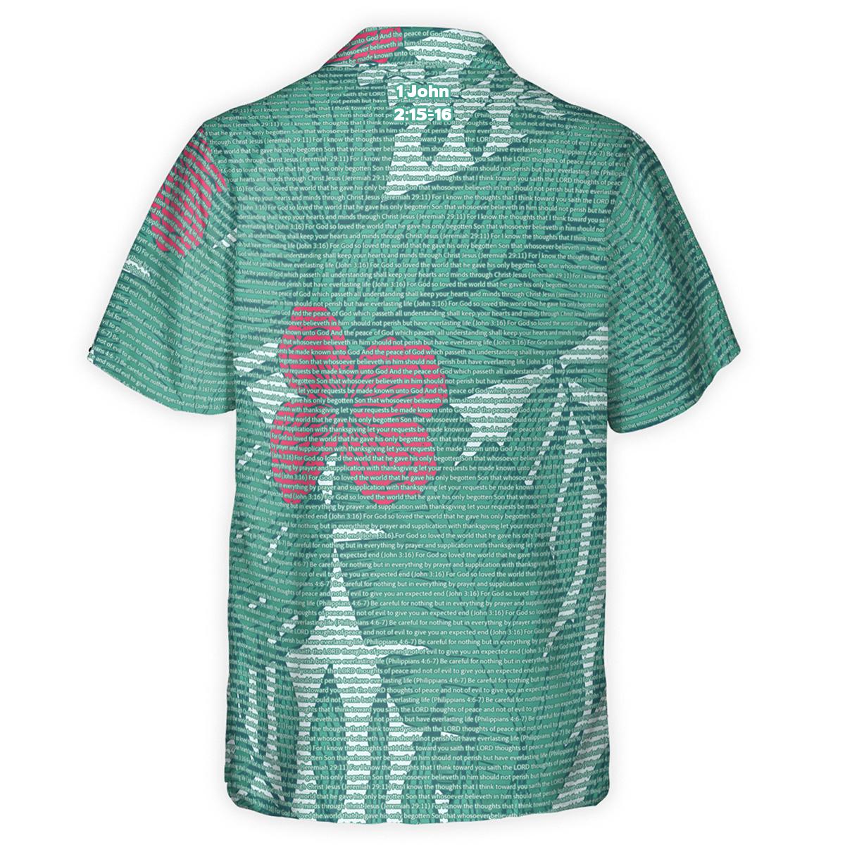 Wear your faith in island style with our cotton Hawaiian shirt featuring 1 John 2:15-16. This soft, breathable shirt brings one of scripture's most powerful promises to life - that nothing can separate us from God's love. Perfect for church, beach, or everyday wear. Faith meets aloha in every comfortable thread.