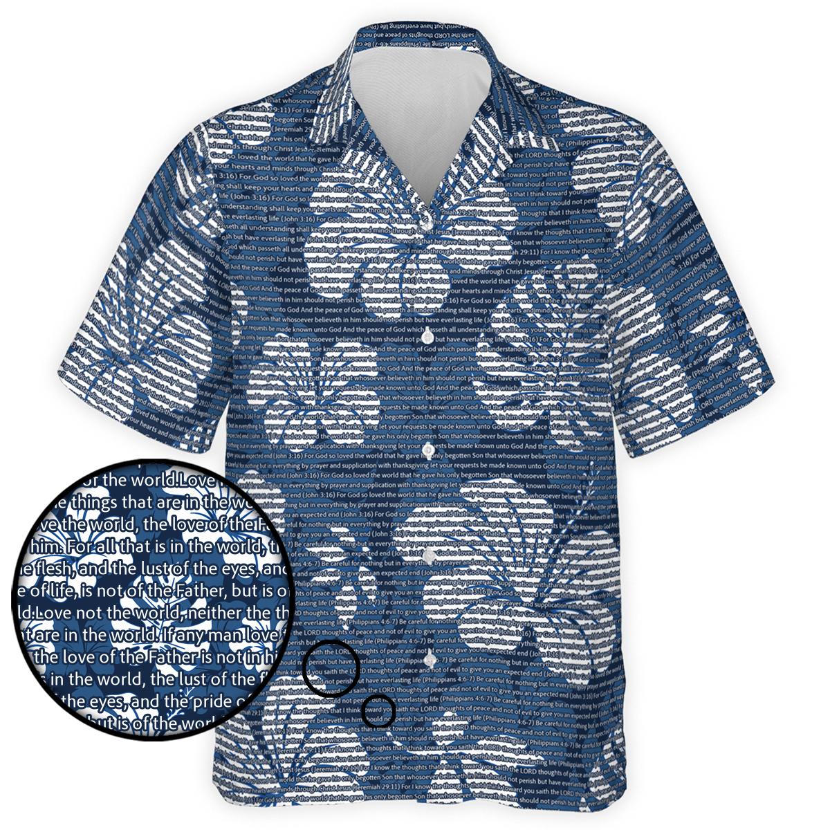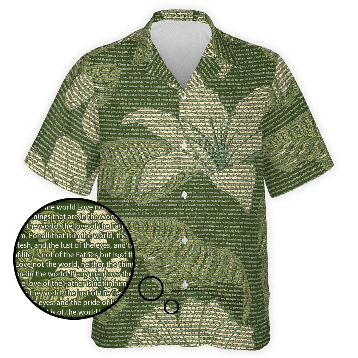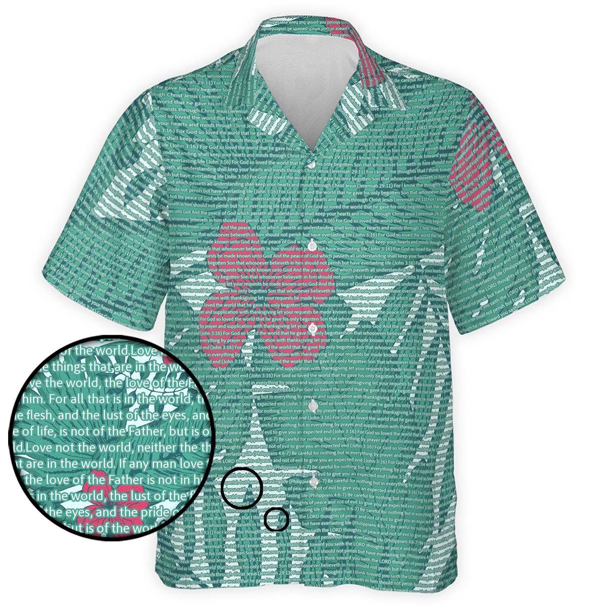 Wear your faith in island style with our cotton Hawaiian shirt featuring 1 John 2:15-16. This soft, breathable shirt brings one of scripture's most powerful promises to life - that nothing can separate us from God's love. Perfect for church, beach, or everyday wear. Faith meets aloha in every comfortable thread.