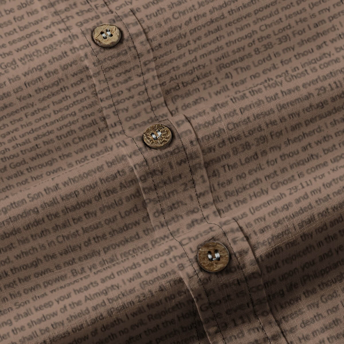 While we love the look of linen, there are practical challenges: pure linen makes it difficult to print clear, readable text, and it significantly increases costs. Our slub cotton is an innovative fabric solution for 2025 - it provides that beautiful linen-like texture and appearance while allowing for crisp, clear verse printing at an affordable price. Plus, it's less prone to wrinkling than 100% linen, making it more practical for everyday wear.